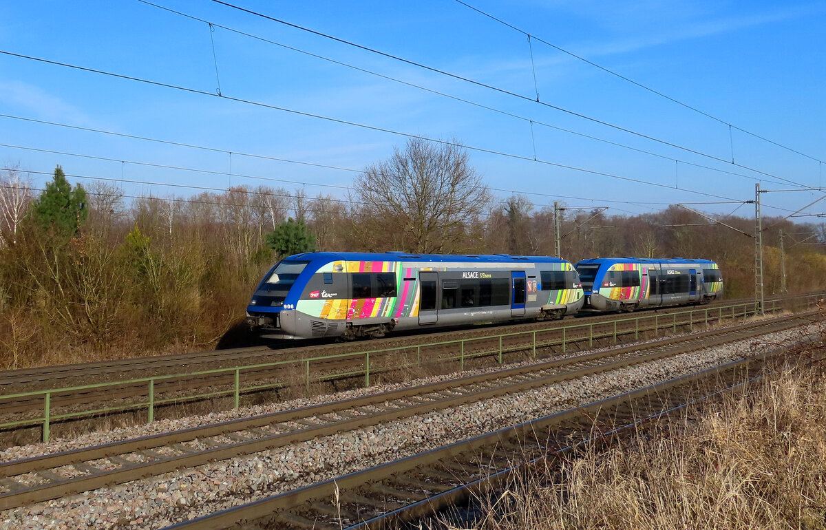 Appenweier - 18. Februar 2025 : SNCF Blauwahle 73906 & 916 am 87417 von Strasburg nach Offenburg.