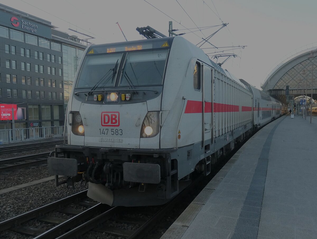 Seit dem Fahrplanwechsel 2025 verkehren auf der Bahnlinie Dresden-Warnemünde IC2-Züge mit einer Baureihe 147.5. Die Züge haben einen Doppelstockwagen mehr im Verband. Rainer Haufe