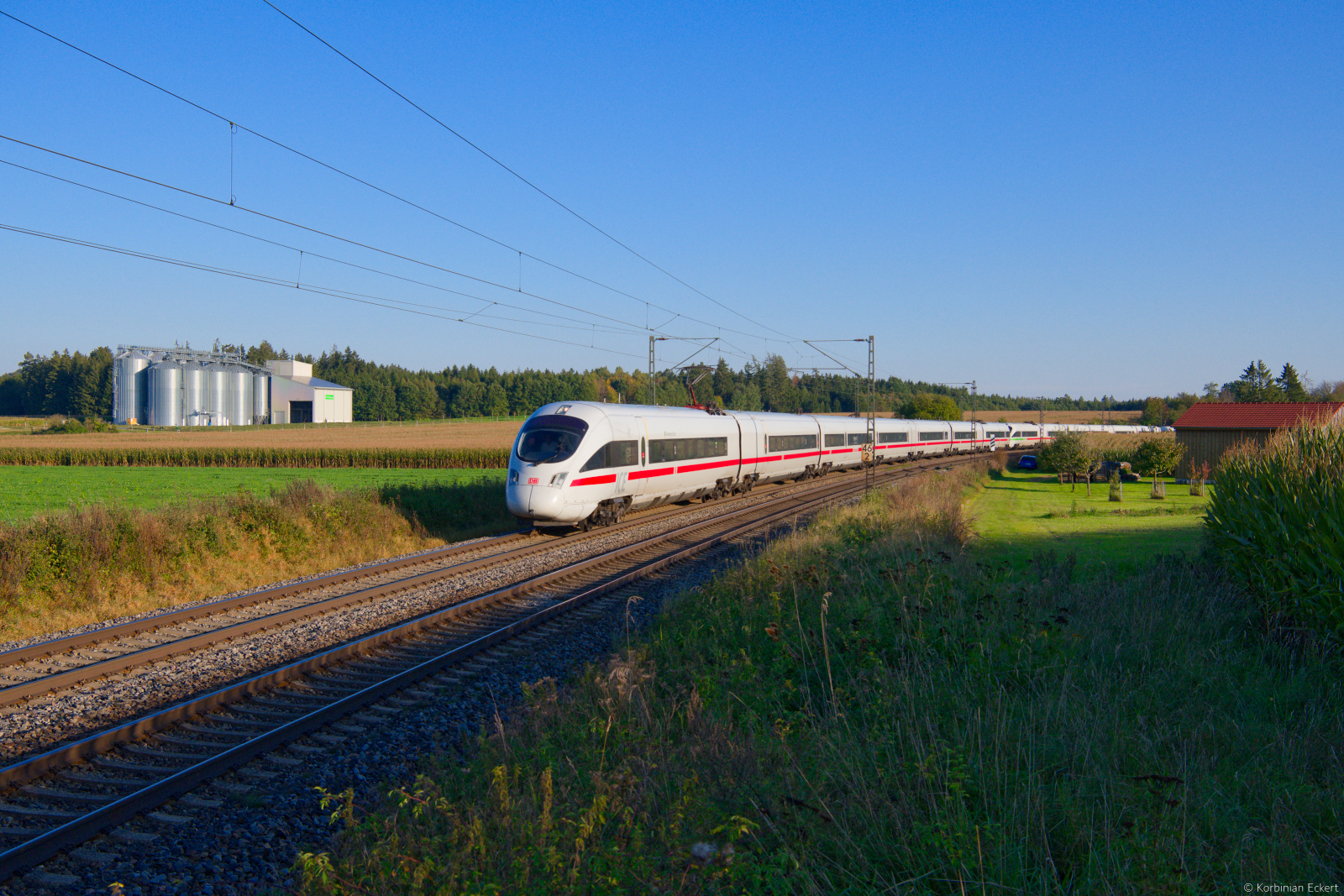 DB 402 024 + DB 402 002 als ICE 681 (Hamburg Hbf - München Hbf) am 14.05.2024 zwischen Northeim und Nörten-Hardenberg. Aufgrund einer BMA-Auslösung, wurde der Zug in Northeim zur Untersuchung gestellt. Nach erfolgter Überprüfung, fuhr der Zug bis Göttingen auf der Altbau und ab da weiter auf der SFS Regelweg. Frederik Reuter