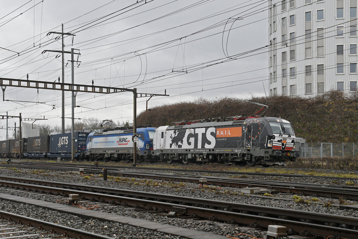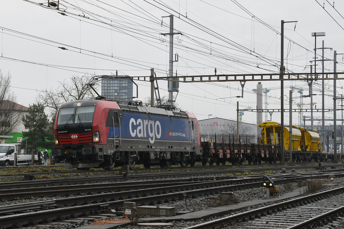 SBB Cargo International 193 474 mit dem Centralbahn-Sonderzug DZ 56735 Köln - Augsburg am 27.02.2026 im Maintal bei Winterhausen. Der Zug beförderte die Fussball-Fans des 1. FC Köln zum Auswärtsspiel beim FC Augsburg. Matthias Kümmel