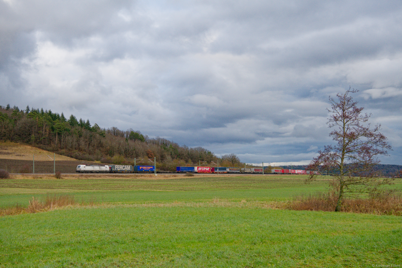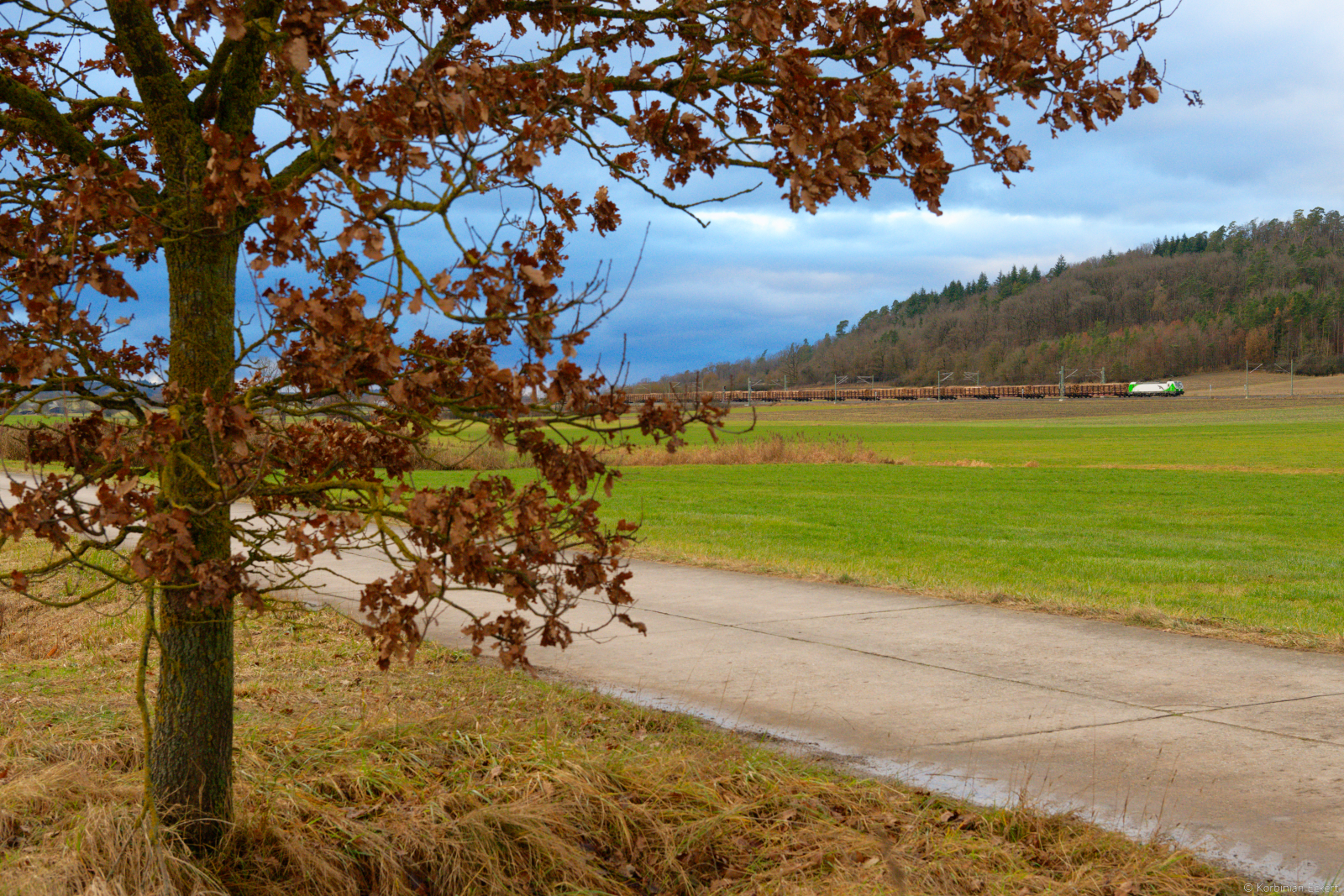 193 550 ATLU/TXL "TX Logistik & AlphaTrains - Zwei Pole mit ernomer Zugkraft" mit einem KLV-Zug bei Dollnstein Richtung Ingolstadt, 23.11.2021 Korbinian Eckert