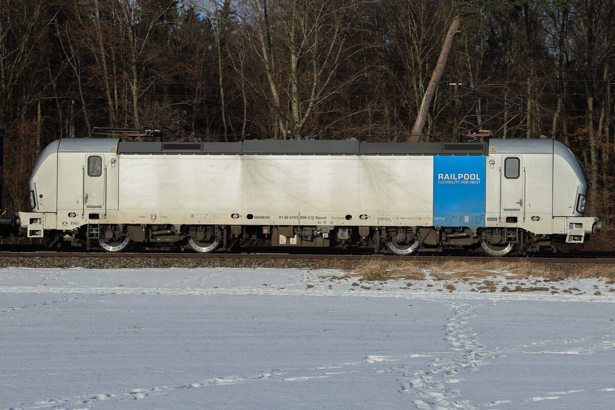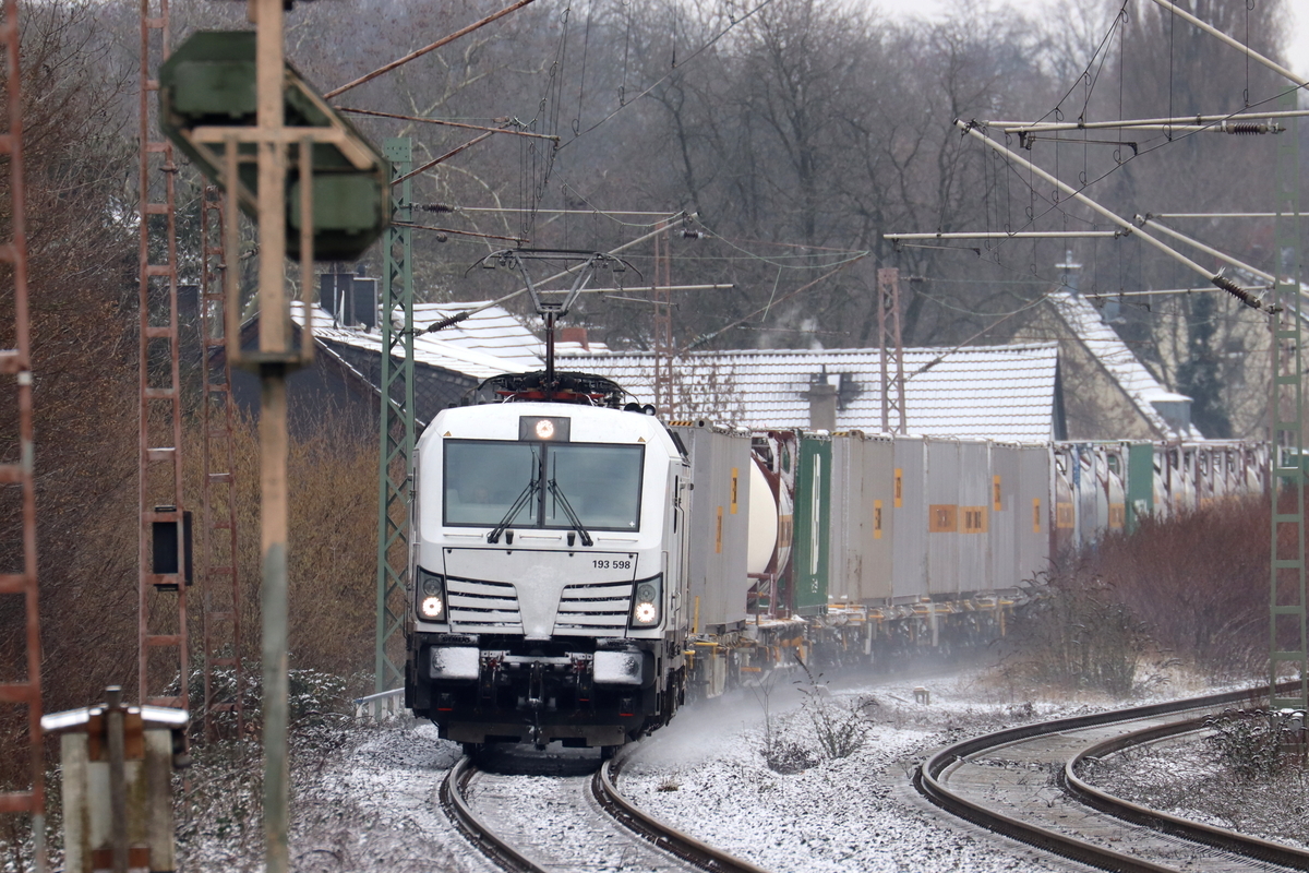Riegel - 5. Februar 2025 : SIEAG 193 452 mit einem Kombi in Richtung Schweiz unterwegs.