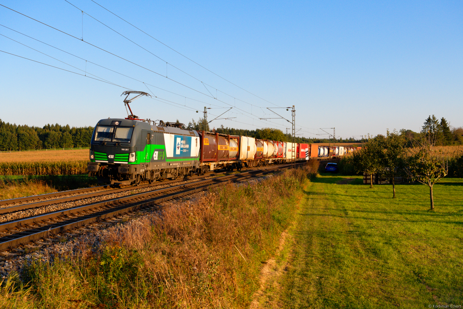 1193 980 WLC und 193 760 ELL/WLC mit einem Containerzug bei Postbauer-Heng Richtung Regensburg, 28.07.2021