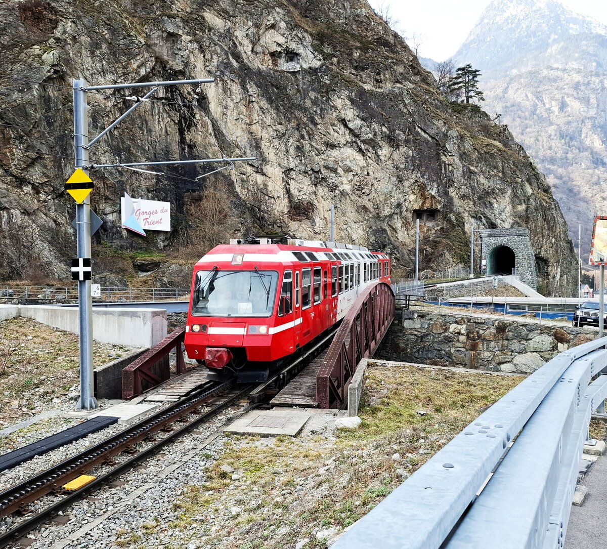 Mont-Blanc-Express__Betriebswerk der TMR in Vernayaz. Hinter den Hallentoren sind verschiedenste Tw-'Gesichter' zu erkennen.__28-02-2026 Mont-Blanc-Express__Betriebswerk der TMR in Vernayaz. Gedeckter Dienst-G-Wagen X2-114.__28-02-2026 Mont-Blanc-Express__SEV wegen Strecken-Bauarbeiten zwischen Martigny und Vernayaz. Die enge Kurve aus dem Betriebsgelände heraus auf die Durchgangsstraße nach Martigny war von den meisten Bussen nicht in einem Zug, ohne zu Rangieren, mit ku ... Mont-Blanc-Express__BDeh 4/8 Nr.3 der TMR auf der Brücke über den Fluß Trient. Hier fand 1844 die 'Schlacht bei der Trient-Brücke' zwischen der 'Alten Schweiz'(Katholisch-Konservativen) und der 'Jungen Schweiz'(Radikal-Liberalen)  ... Mont-Blanc-Express__An der Bahn-Brücke über den Fluß Trient, wo 1844 die 'Schlacht bei der Trient-Brücke' stattfand, wird heute nur noch vor dem Kontakt mit unverträglich hoher Stromspannung gewarnt.__28-02-2026 Mont-Blanc-Express__Beh4/8 fährt oberhalb Vernayaz an steiler Felswand steil aufwärts.__28-02-2026 Das besondere Highlight an den Museumstagen in Bochum-Dahlhausen am 20.04.2024 war die legendäre Schnellzuglok S 3/6.