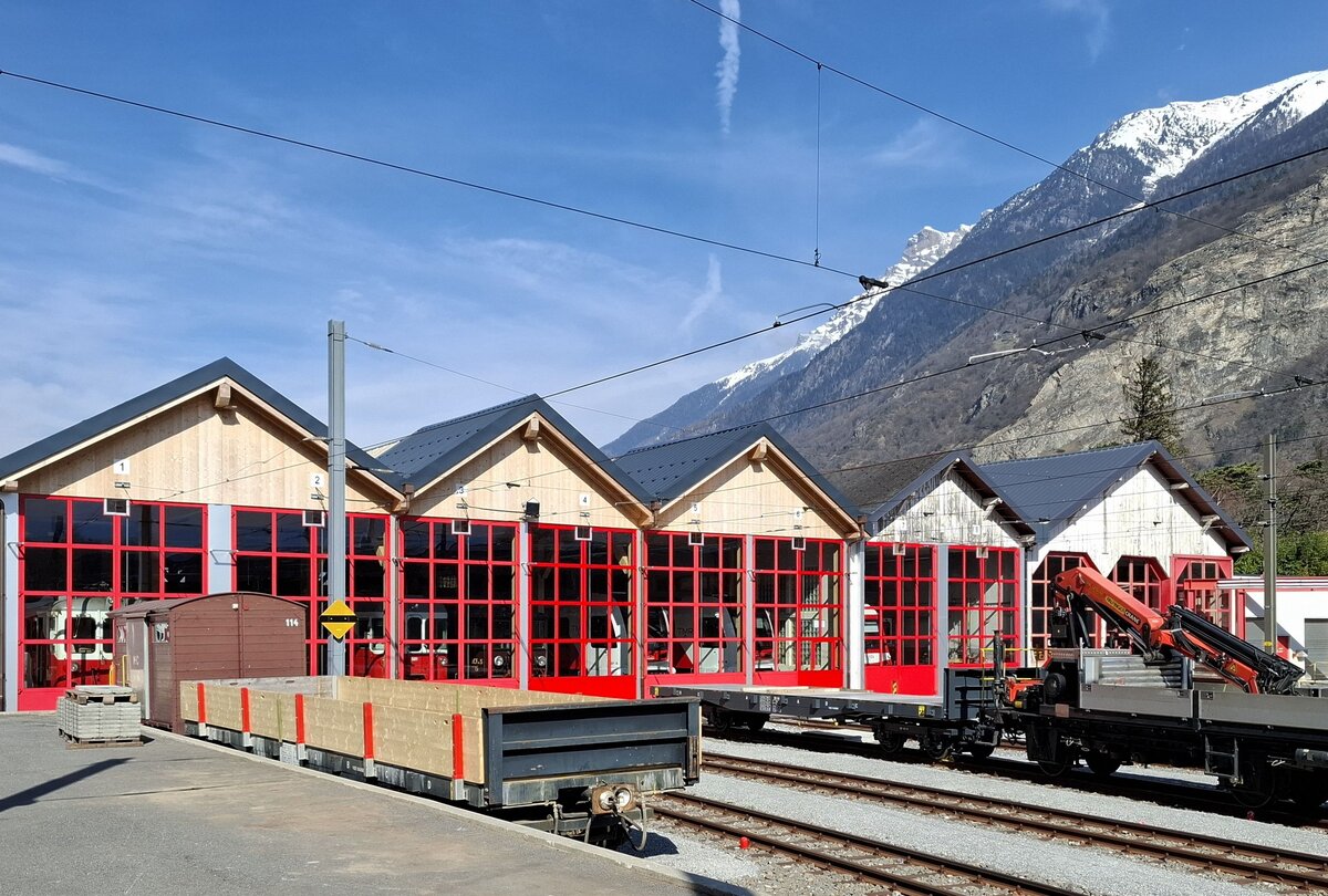 Mont-Blanc-Express__Betriebswerk der TMR in Vernayaz. Hinter den Hallentoren ...