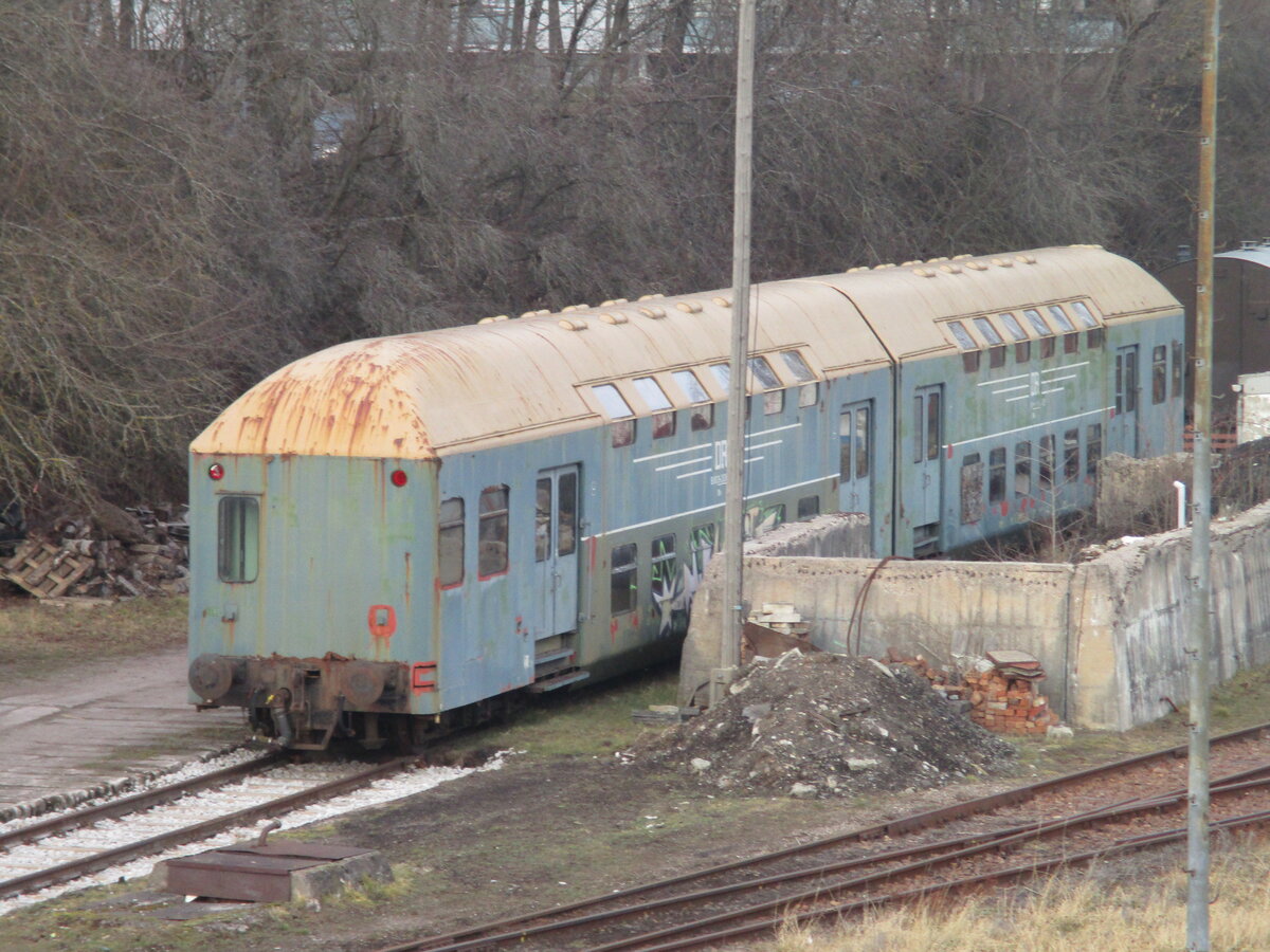 Eine ehemalige zweiteilige DR Doppelstockeinheit stand,am 24.Januar 2026,in ...