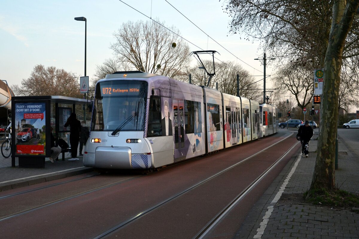 Rheinbahn Tw 3313 Linie U72, Ratingen Mitte Vollwerbung "Wir bleiben ...