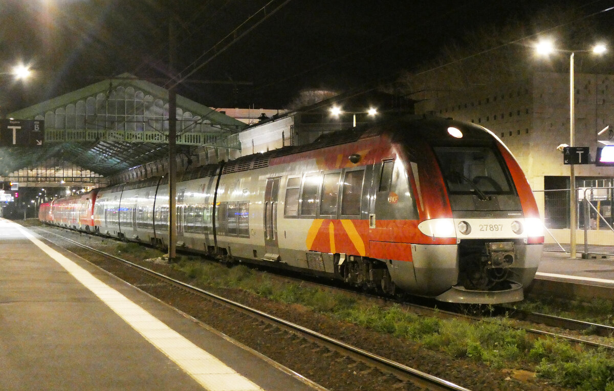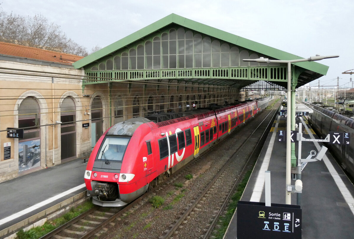 Triebzug 27897 hält als TER in Richtung Sète ...