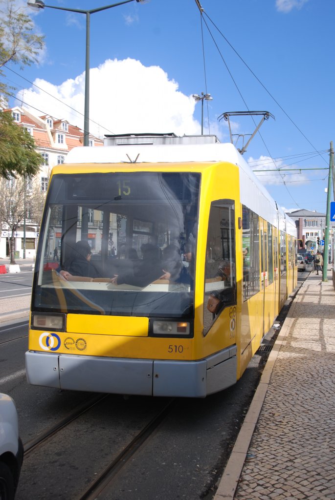 LISBOA (Distrikt Lisboa), 19.02.2010, Straßenbahnlinie 15 in Richtung Praça da Figueira in der Haltestelle Cais do Sodré