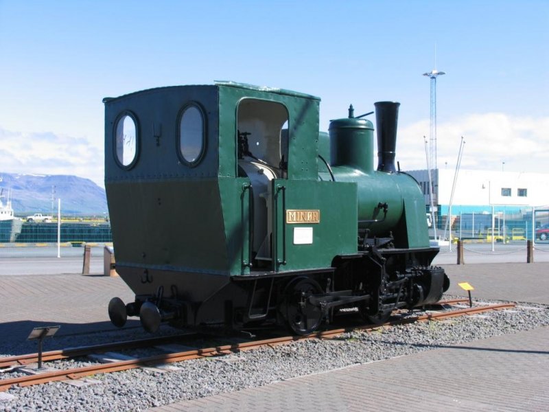 You can find this locomotive (Minør) in the harbour of the capital Reykjavik. Iceland's first (one of three) railway, the Reykjavik Harbour Railway, was built to transport materials to construct the quay and breakwater between the mainland and Örfirisey Island. One section of the 90 cm gauge track ran from Öskjuhlið and the other went to Skólavörðuholt. Two steam locomotives, Pionér and Minør, were purchased from Denmark and transported to Reykjavik. Each locomotive was 3 m high, 4·9 m long, and weighed 13 tons. From 1913-1917 the locomotives were quite busy, often making up to 25 trips each day. Even after 1917, the locomotives remained in limited use up to 1928. Interestingly, both locomotives have been preserved. Locomotive Minør is in the harbour of Reykjavik and the locomotive Pionér can be seen at the Árbaer open-air museum. Date Jan de Vries