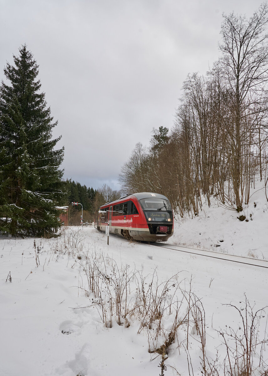 642 231 war am 02.01.2026 als RB 21986 von Johanngeorgenstadt nach Zwickau unterwegs. Gerade wurde der Bahnübergang Der Schwarzenberger Straße in Johanngeorgenstadt überquert. Michael Brunsch