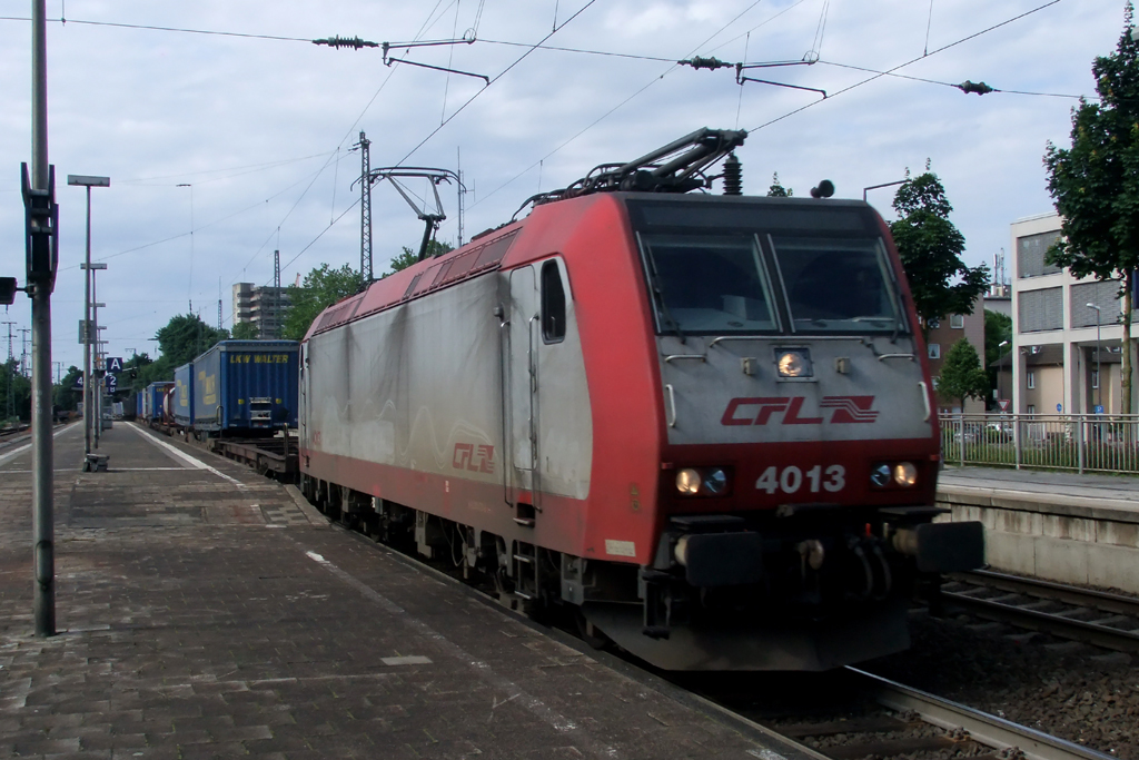 RAILION DB Logistics 145 013-9 mit einem KLV Richtung Wiesbaden, am 17.05.2012 bei Erbach (Rhg).