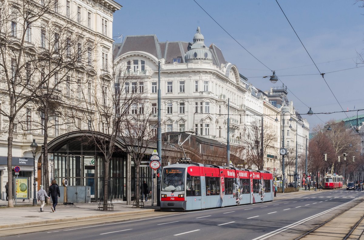 eine schöne Aufnahme von der Linie 1 an der Hst. Stubentor. - Danke für die Auskünfte über die Linienänderungen in Verbindung mit den Gleisbauarbeiten im Bereich Oper - Volkstheater.
