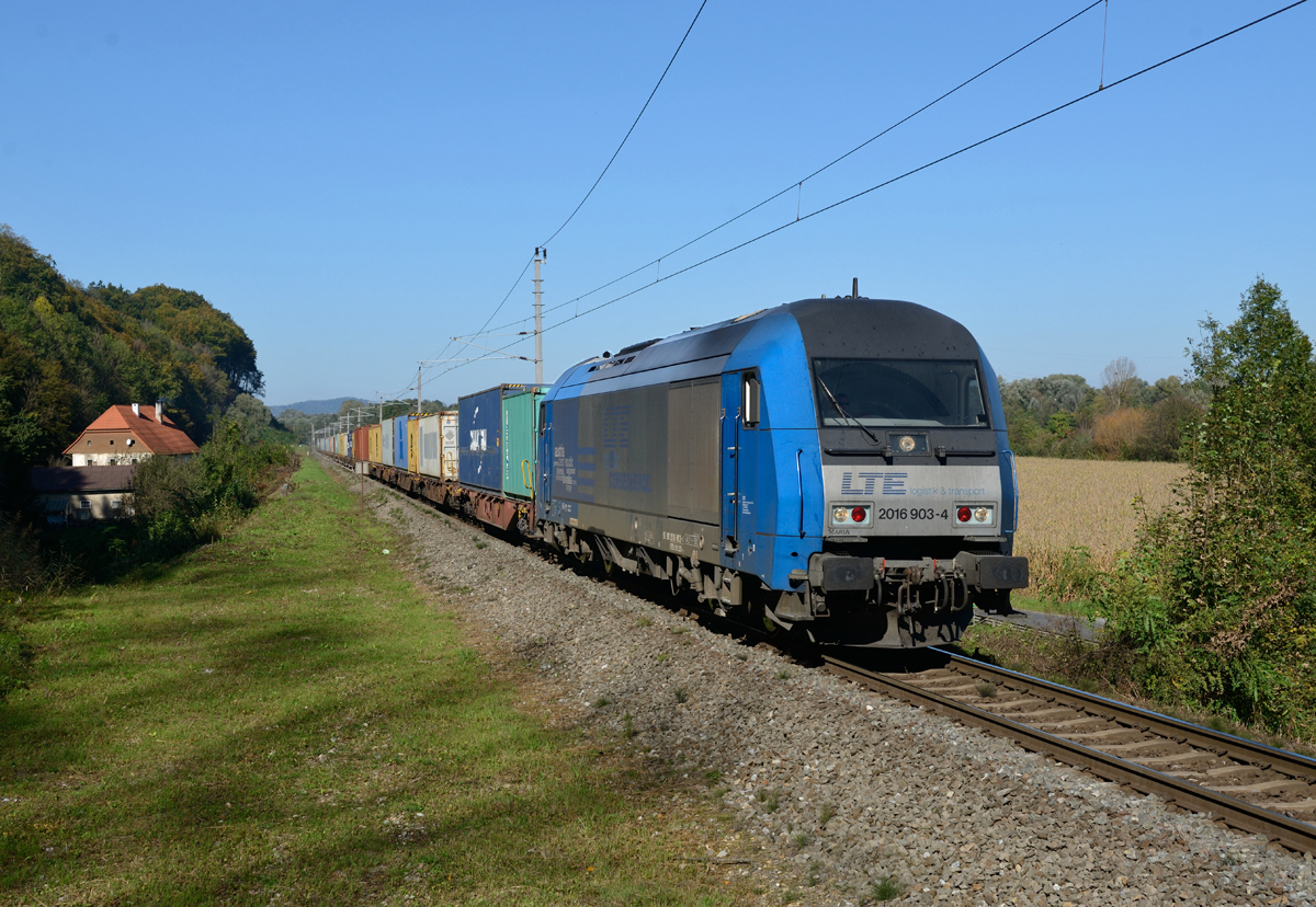 Positiv überrascht war ich schon, als ich den mit unterschiedlichen Wagen und Lackierungen zusammengestellten slowenischen Personenzug sah. Dadurch ist ein abwechslungsreiches Zugbild entstanden.