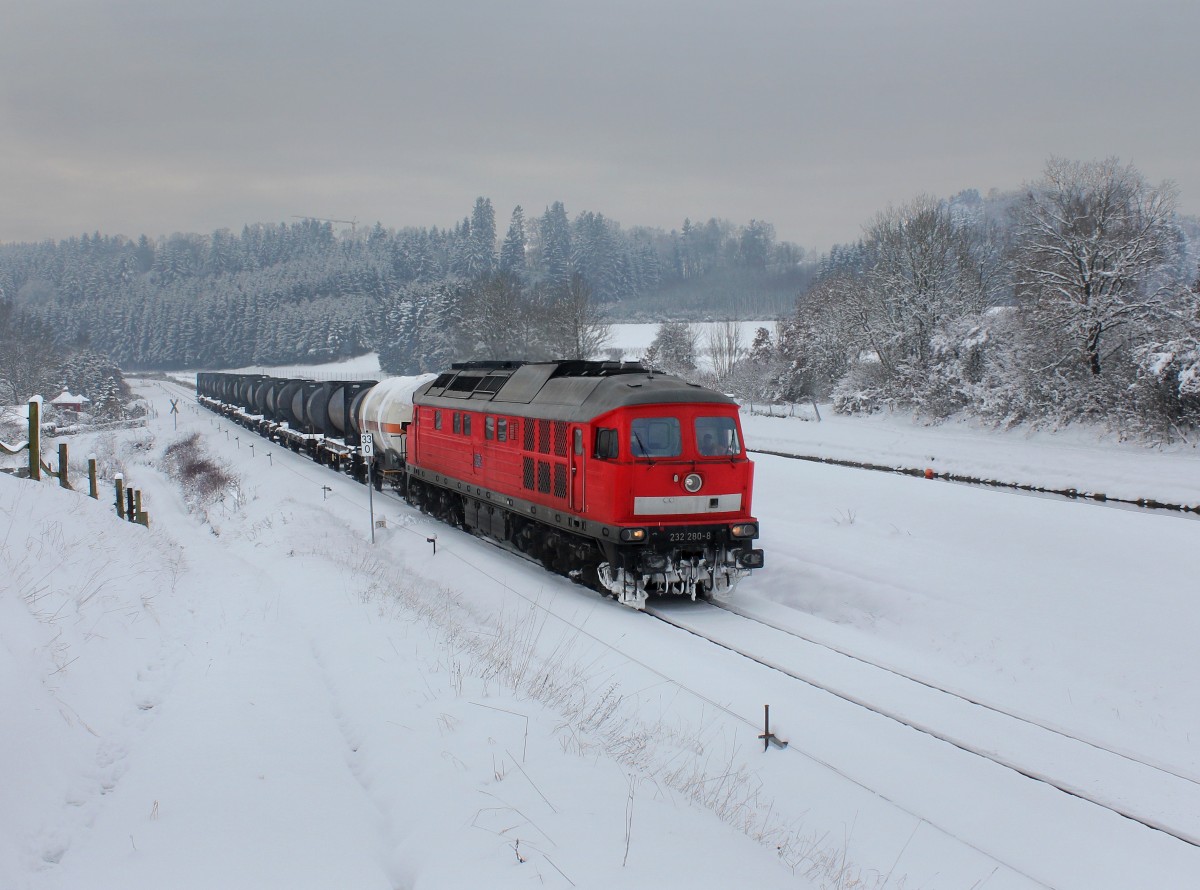 Eine 232er vor einem Müllzug, interessant. Tolles Bild!