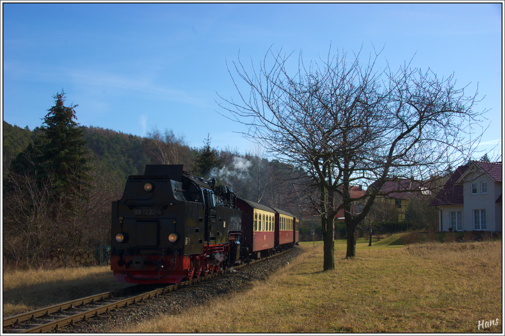 Hallo Jeanny, mir gefällt dieses Bild mit mehr Landschaft und weniger Zug auch besser, aber vielleicht findet das andere Bild auch ihre Liebhaber...