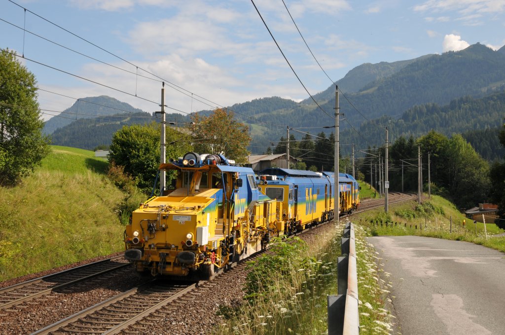 Dieser bunte Bauzug der BBW (Bahnbau Wels Gmbh) kam mir am 05/08/2011 im österreichischen Fieberbrunn entgegen. (to the image)