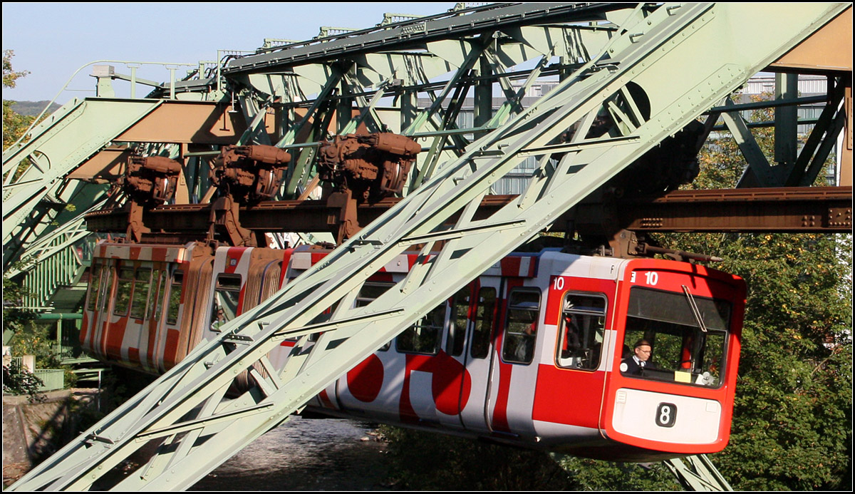 Immer wieder beeindruckend - schön, dass (anders als die Wuppertaler Straßenbahn) die Schwebebahn nicht dem "Fortschritt" zum Opfer gefallen ist.