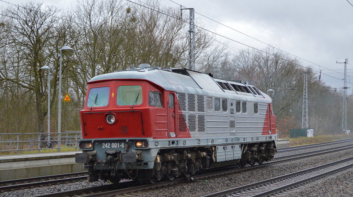 242 001-6/EKO42 hat den Besitzer gewechselt, und gehört seit 04/2021 der TRAIN Rental GmbH in Eckental-Eschenau. Die Lok ist zur Zeit in Cottbus abgestellt.