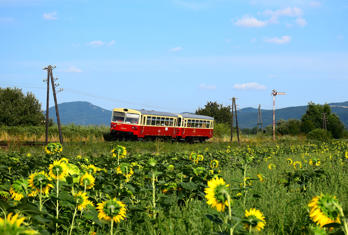 Wirklich wunderschön; erst fällt der Blick auf die Sonnenblumen, später auf die Telegrafenmasten und bleibt dann am Formsignal hängen...