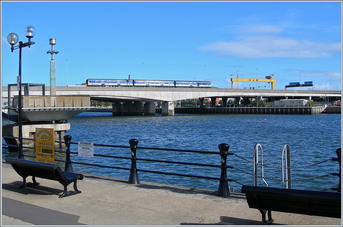 da sich rechts im Bild der Bahnhof Belfast Central befindet und sich die meisten Strecken erst nach der Brücke verzweigen ist hier wirklich ein interssanter Verkehr zu beobchaten. Und auch das Wasser des Lagan trägt zur Entspannung bei.