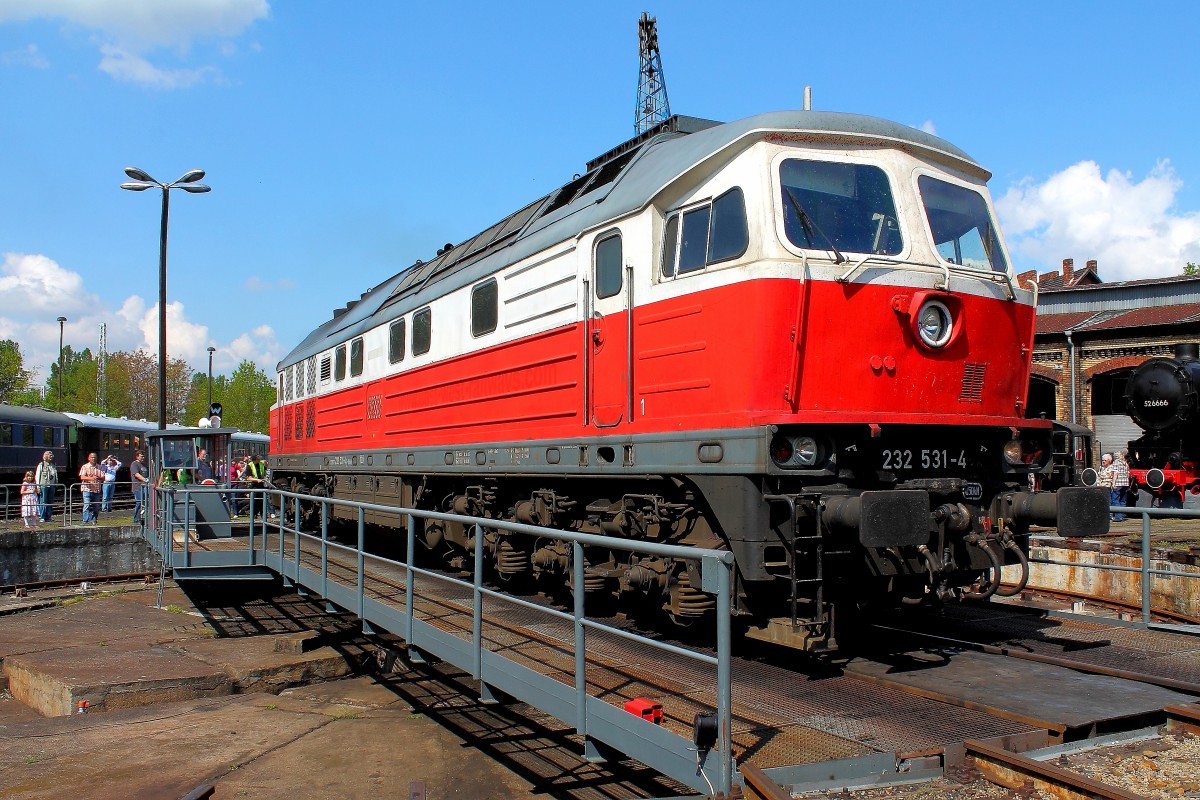 Die 232 531-4 der EWR präsentiert sich am 26.04.2014 beim Frühlingsfest im Bw Berlin Schöneweide. (to the image)