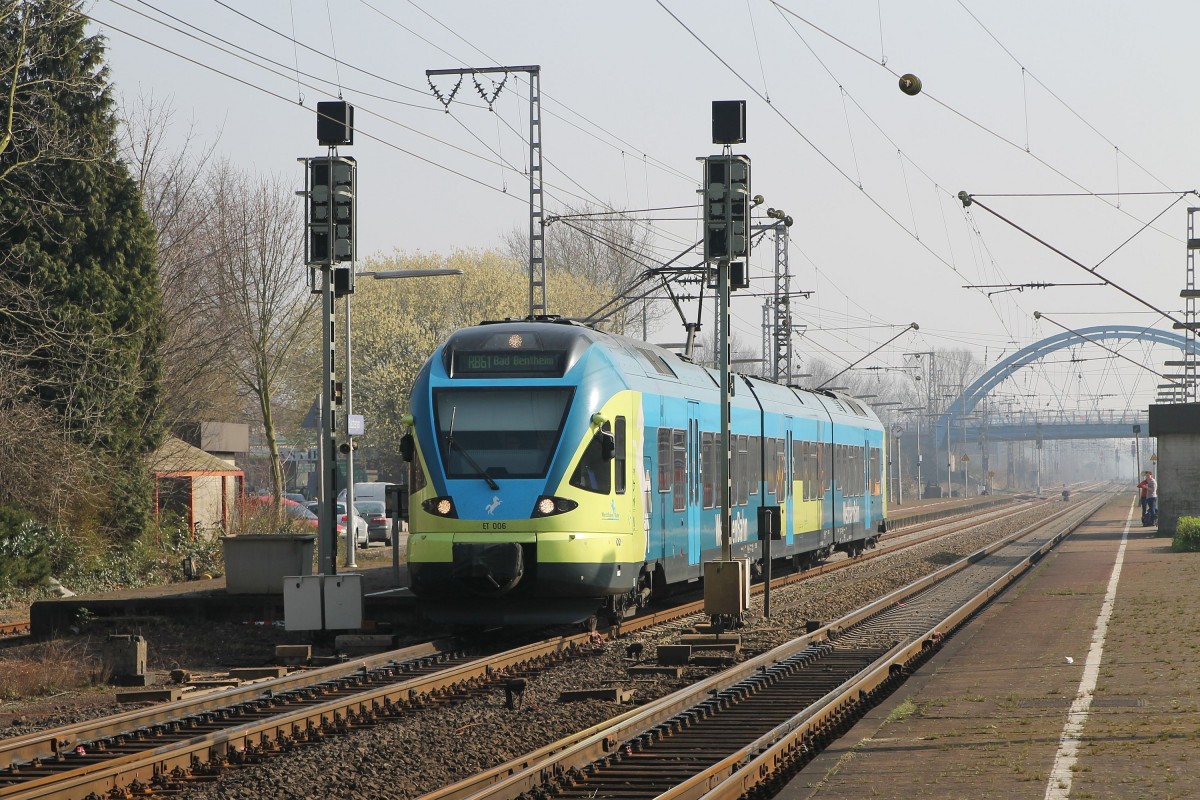 ET 006 der Westfalenbahn mit WFB90498 Bielefeld Hauptbahnhof-Bad Bentheim auf Bahnhof Salzbergen am 14-3-2014. (to the image)