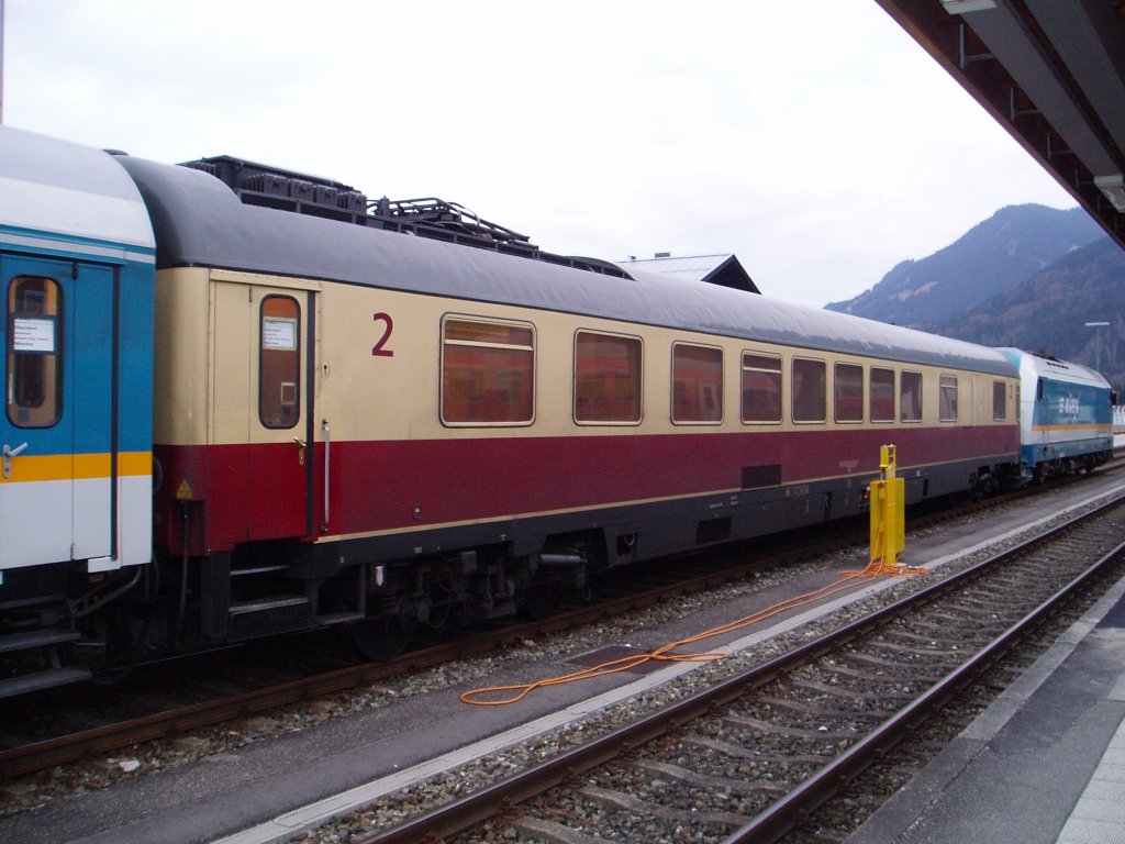 Die beiden TEE-Speisewagen werden nie im Alex-Schema lackiert - sie bleiben so, wie sie sind. Und die Stromabnehmer sind allesamt außer Betrieb.