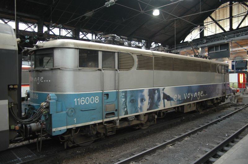 Die Lok mit der silbrig-blauen " en voyages" Farbgebung trägt die Nummer " 1" 16008. (Die führende " 1" kennzeichnet die Zuordnung zum Bereich Fernverkehr der SNCF). Es ist also die Lok BB16008. Sie gehört zur Baureihe BB16000. Dort ist sie richtig einsortiert.