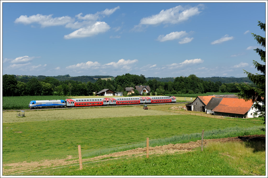 danke für Deinen Kommentar. Ich hatte dieses Bild gewählt, da nach vorn hin schon die Schatten von den Bäumen kommen. Aber ich lad nochmal eine andere Version hoch, bei der der Zug weiter vorn ist und rechts mehr Bildausschnitt. Vielleicht wirkt das doch besser.