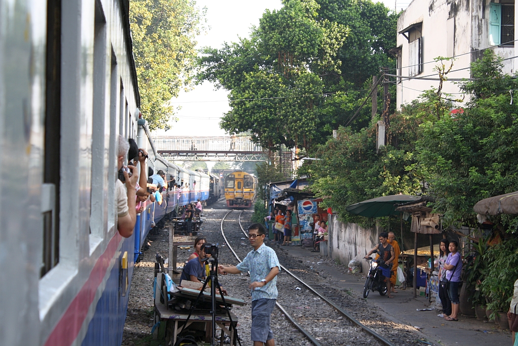 Bei dem Zug handelt es sich um einen Dampfsonderzug und da schauen halt die Leute, vor allem die Touristen, recht gerne aus dem Fenster.