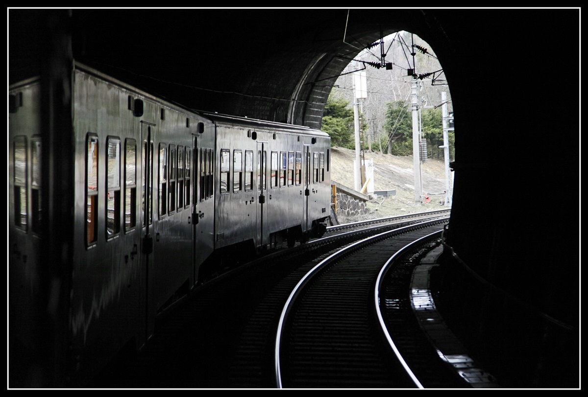Am 13.03.2019 wurde beim Regionalverkehr über den Semmering der planmäßige Talenttriebwagen durch einen Altbautriebwagen der Reihe 4020 ersetzt.So hatte man an diesem Tag ausnahmsweise die Gelegenheit die fahrt über den Zauberberg bei geöffneten fenster zu geniesen. Bild : Ausfahrt aus dem Wolfsberg - Tunnel. (to the image)