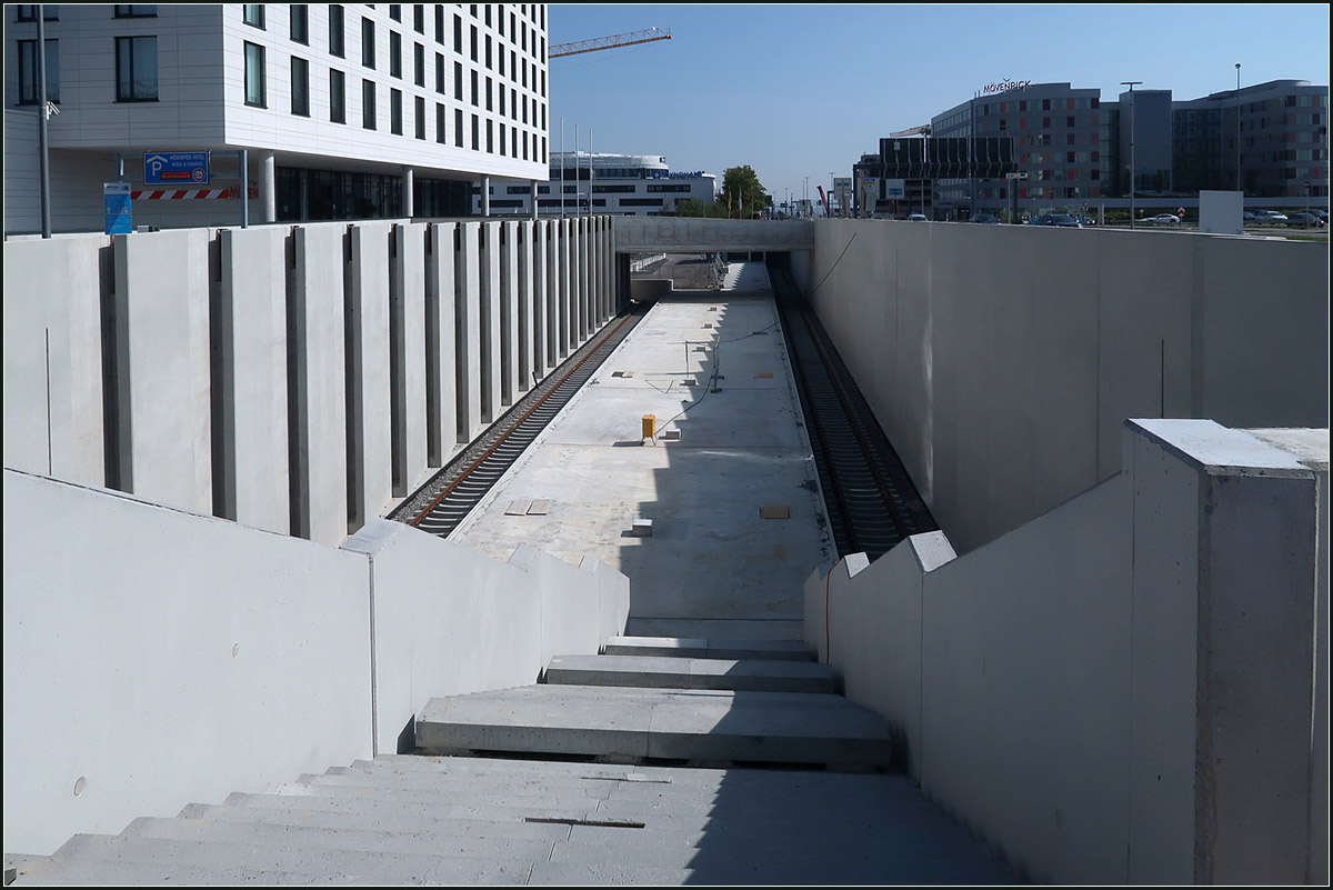 Hier in Kreuzlingen hätte ich als Architekt für die Überdachung des Treppen- und Rampenabganges eine leichtere Überdachung gewählt, zumal Beton ein höchst klimaschädliches Baumaterial ist. Für die Unterführung selber gibt es wohl kaum Alternativen.