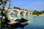 schönes Bild von dem Tw und Beiwagen, auch wenn die angebrachte Werbung nicht so recht passen will.