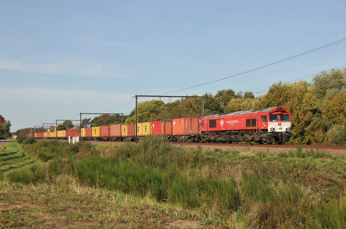 ein schönes Bild von der Class 66 PB13 "Ilse" von Crossrail mit einem MSC-Containerzug in Lummen-Linkhout.