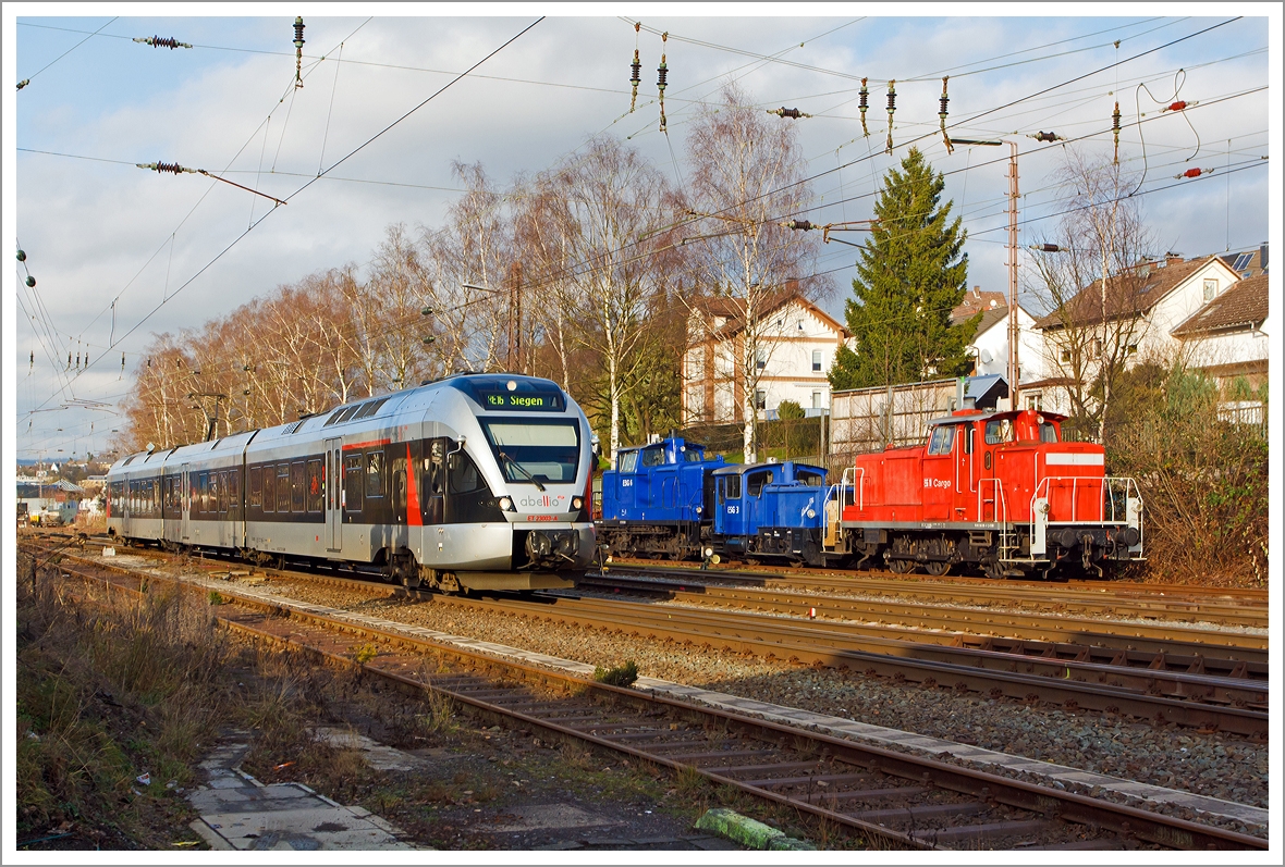 Die tollen Farben, sowohl des Flirt, als auch der abgestellten Loks veleihen dem herrlichen Bild eine wunderbare Stimmung.