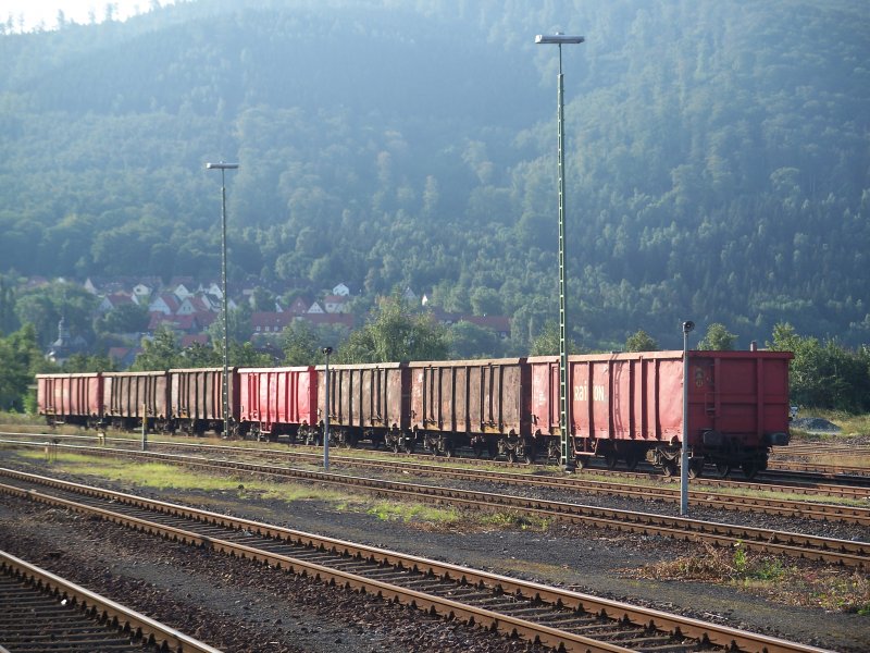 das Güterwagenbild gefällt mir irgendwie. Die Wagen sind gut im Licht und heben sich gut vor dem bewaldeten Berg ab. Zudem komme durch die Lichtrichtung (Schattenbildung) die Strukturen der Waggons gut zu Geltung.