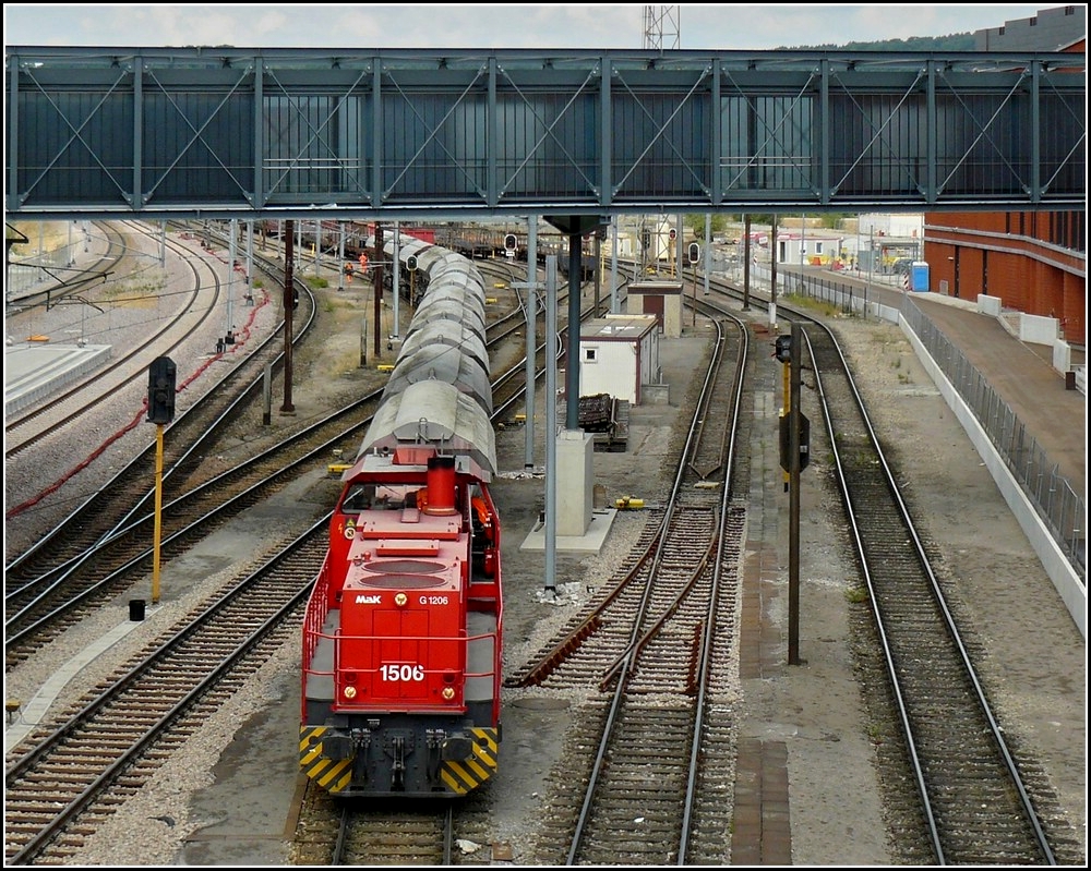 Kräftige Lok mit kräftigen Farben in ein schönes Bild umgesetzt, Jeanny. Angeschnittene, geschwungene Form des Perrons ist m. E. vielversprechend.