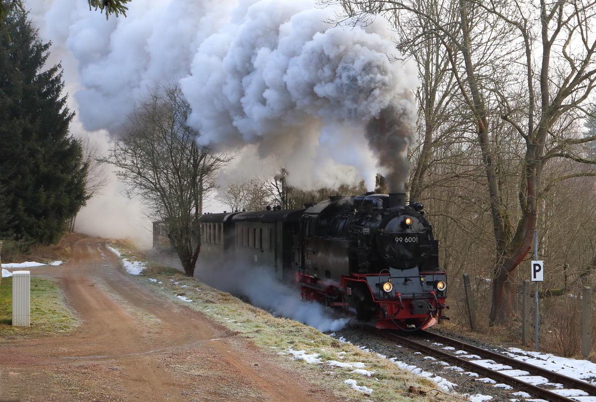 eine sehr schöne Aufnahme von der Scheinanfahrt der 99 6001, gefällt mir sehr gut.