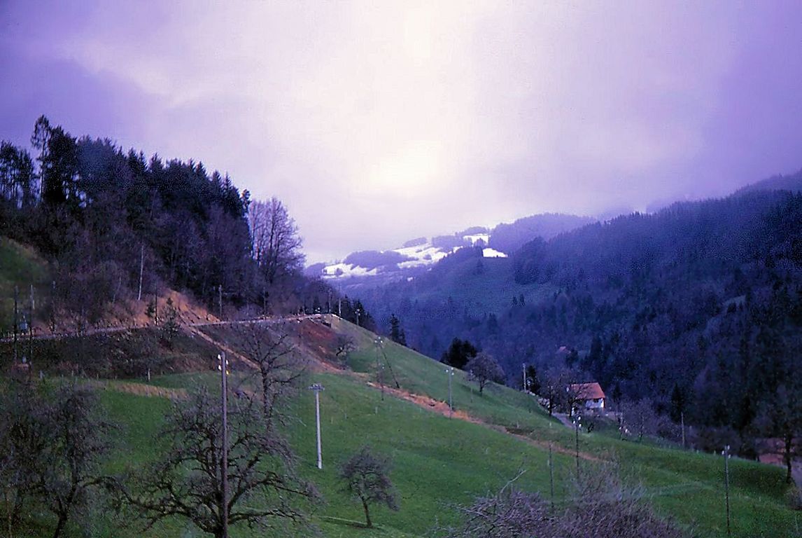 Wunderschön! Heute steht etwas in er Bildmitte das kleine "Empfangsgebäude" der Museumsbahn Blonay - Chamby, welche zur Zeit der Aufnahme wohl ihre zweite Saison hinter sich hatte.
