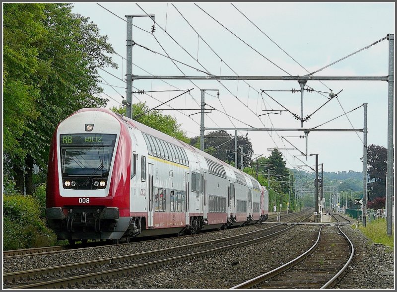 Auf diesem Bild sieht man den Verlauf des dritten nicht elektrifizierten Gleises nach Bissen an der Haltestelle Schieren. 23.06.09 (Jeanny) (to the image)