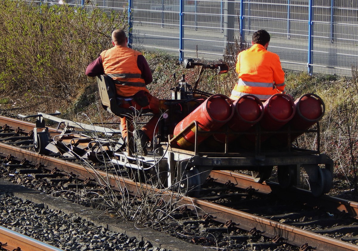 nach der perspektive deines fotos zu urteilen muss ich es sich um eine schienenvorwärmeinheit handeln.dieses gerät wird bei schienenschweissarbeiten genutzt um temperaturen für eine optimale schweisslücke zu erzeugen.da heisst das bei kalten temparaturen des schienenmaterials für die erforderliche schweisstemperatur vorgewärmt muss.das geschieht durch die vier propanflaschen die durch druckleitungen mit den brennerblechen verbunden sind.die brennerflamme wird direkt auf die schiene geleitet,der stahl dehnt sich aus und die das mass für die schweisslücke entsteht.also kann sich in der warmen jahreszeit die schiene wieder ausdehnen ohne das die schweissung zu einer verwerfung führt oder in der kalten jahreszeit reisst.das gerätist eigenfahrbar weil in ihrer ganzen länge erwärmt werden muss.so in groben zügen,die ganze sache ist kompliziert aber sehr wichtig.ich hoffe das ich dir helfen konnte,