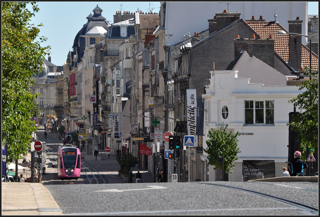 Interessant die abwechslungsreichen, bunten Farben der Strassenban in Reims.