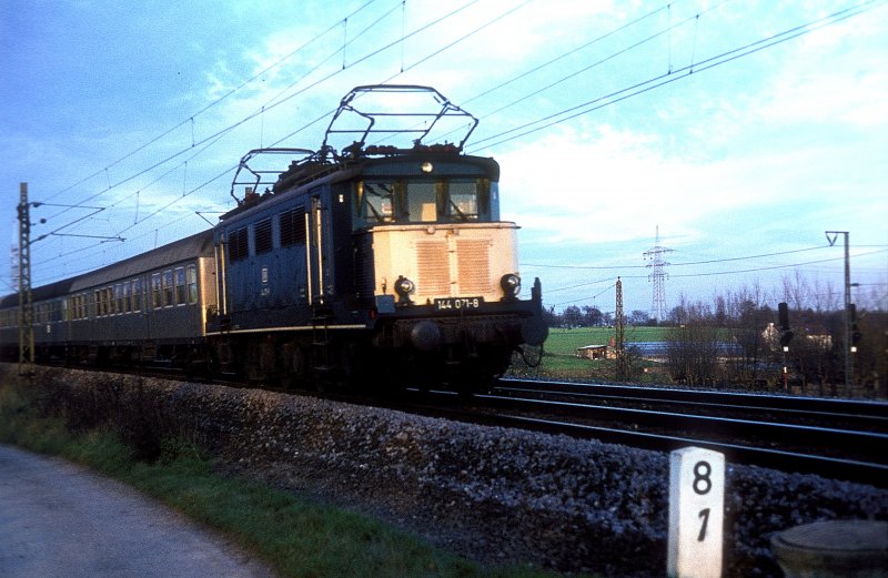 Das hat schon was, eine 144 in dieser Farbgebung von damals. Habe bisher immer nur grüne gesehen, da die bei uns damals nicht fuhren. Danke für deine vielen alten Aufnahmen. Du hast damals schon Loks fotografiert und ich könnte mich heute sonstwohin beißen, dass ich trotz einer guten Kamera damals keine Loks abgelichtet habe.