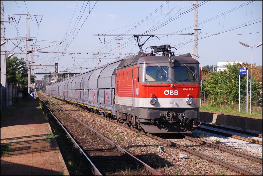 Am 12.08.2011 musste die 1144 256 mit einem RCA-Güterzug in der Haidestraße auf grünes Licht warten. (to the image)