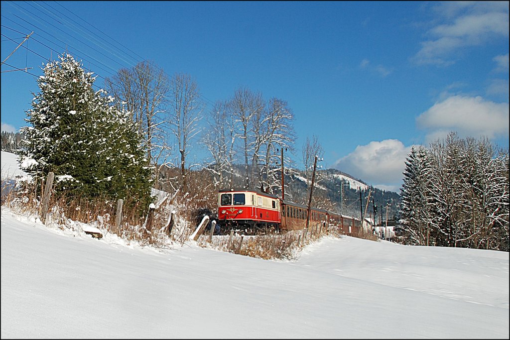Ich wünsche allen Fotografen einen Guten Rutsch ins Neue Jahr und auch im Neuem Jahr Gut Licht! - Zum Bild: Es entstand am 29.12.2010 und zwar kurz nach Erlaufklause. Den REX 6807 zog die 1099 013. (to the image)