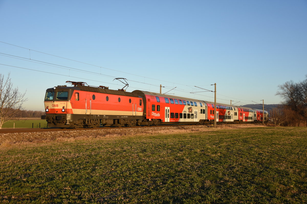 Am 30.12.2016 ist die 1144 092 mit dem REX 2828 von Wien Franz-Josefs-Bahnhof nach Krems/Donau unterwegs, und konnte kurz vor Muckendorf-Wipfing fotografiert werden (to the image)