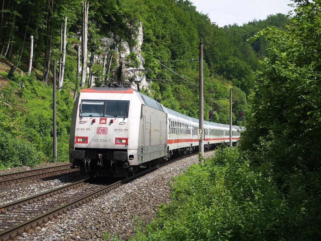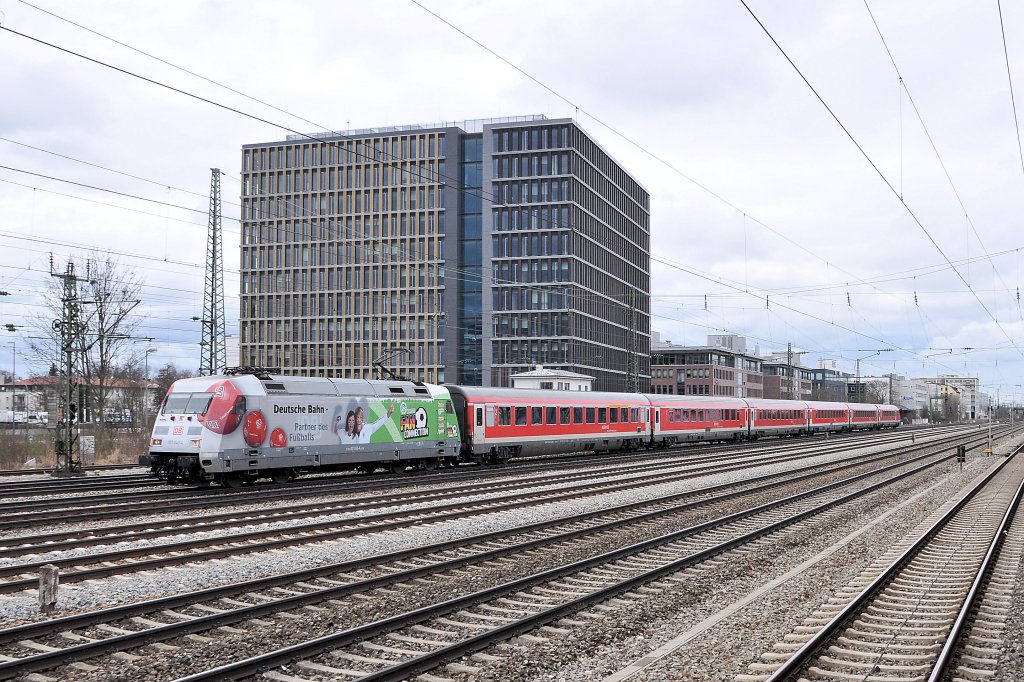 Schönes Bild! Auf dem Bild ist der München-Nürnberg-Express zu sehen, der aus der BR.101 und ehemaligen IC Waggons besteht.