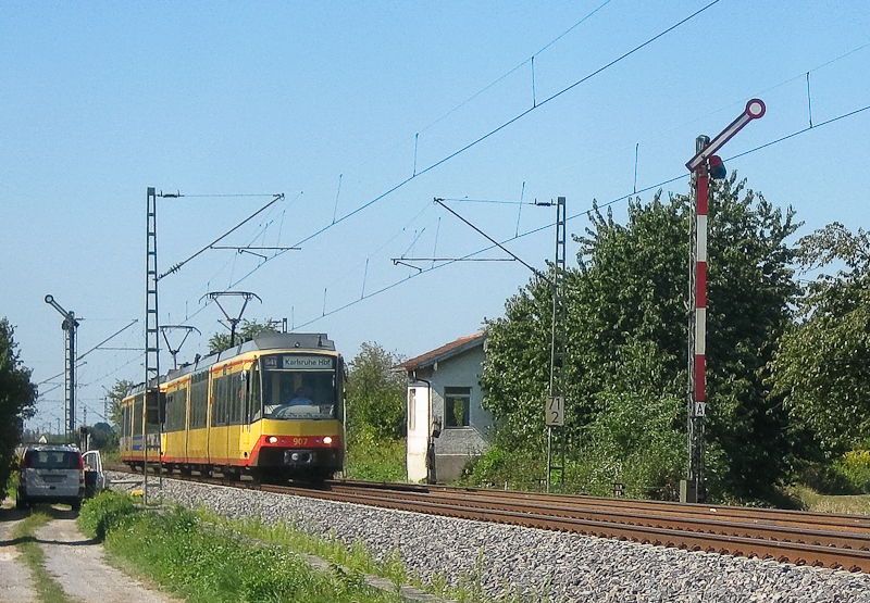Bei den Straßenbahnen, hier der Fall ist es die Linie 2 und nicht die S2, gibt es einen Unterschied, denn auch andere Leute verwechseln. Die Straßenbahn hat bei der Liniennummer nur die Zahl, z.B. 2. Die S-Bahn oder auch Stadtbahn hat einen Zusatz mit einem S, z.B. S4. Die Stadtbahn fährt auch weiter weg, nach Heilbronn oder Rastatt. Die Straßenbahn fährt nur kürzere Strecken, z.B nach Wolfartsweier oder zur Siemensallee.