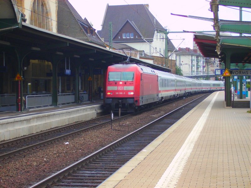 Vorne zieht die 101 106 und hinten schiebt die 101 103 ihren IC durch Worms.